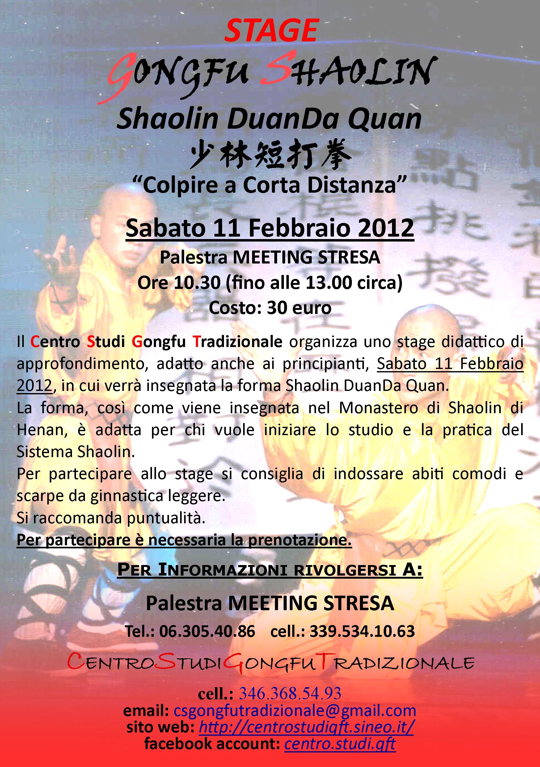 in cui verrà insegnata la forma Shaolin DuanDa Quan