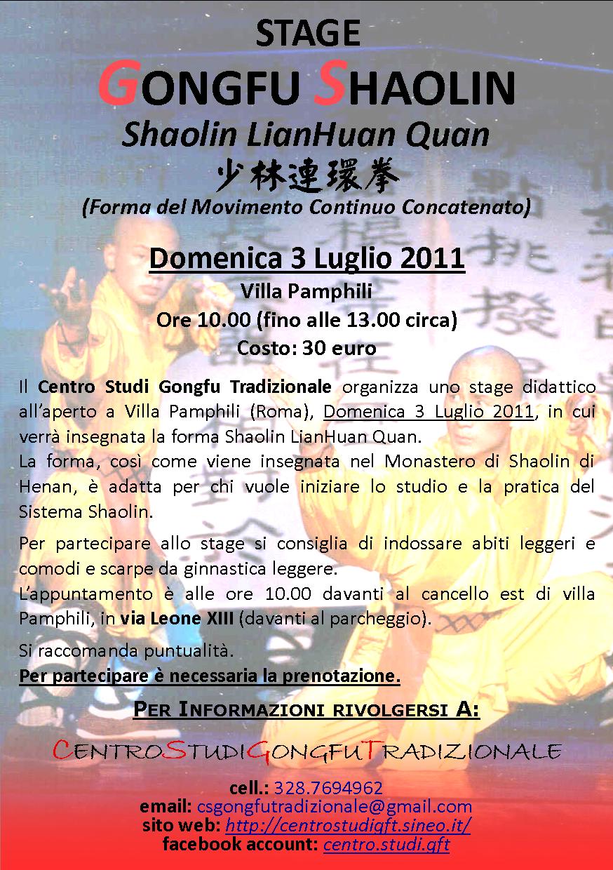 in cui verrà insegnata la forma Shaolin LianHuan Quan