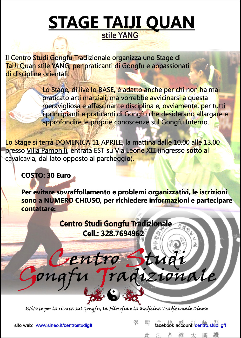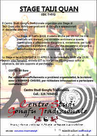 organizza uno Stage di TaiJi Quan stile YANG, per praticanti di Gongfu e appassionati di discipline